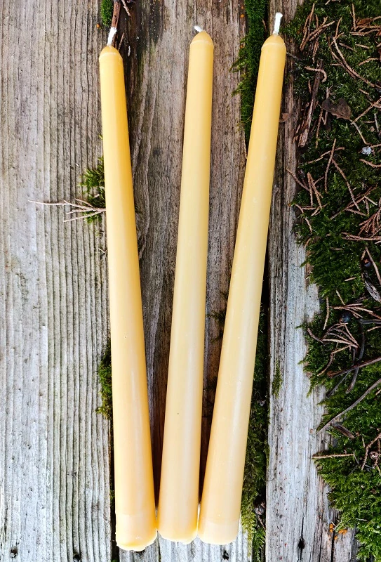 Každá svíčka je unikátní – barva vosku se může lišit v závislosti na typu pylu a oblastech, kde včelky žijí. Není to vada, ale důkaz přírodního původu a jedinečnosti každého kusu!